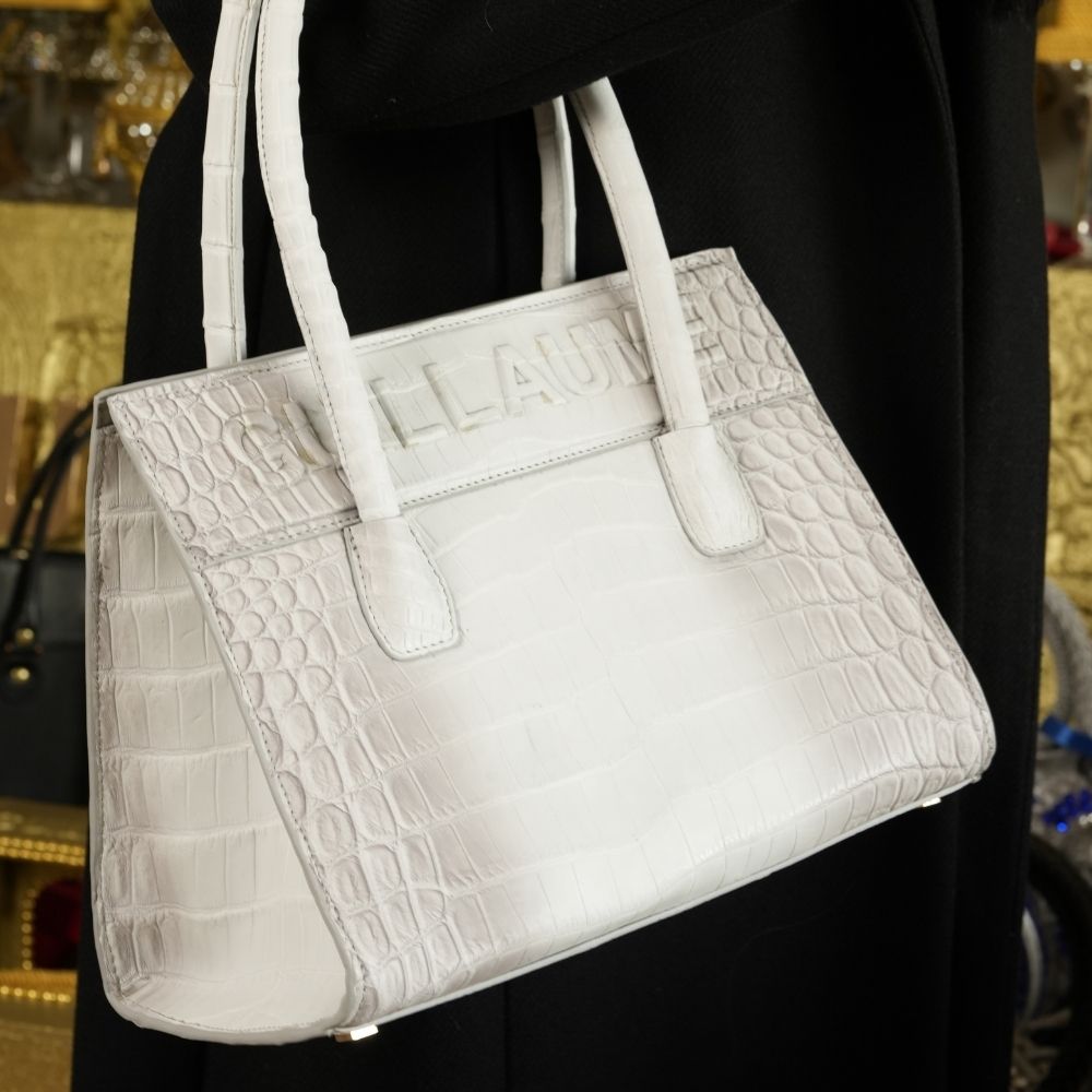 Guillaume Crocodile captures the allure of exotic elegance and bold sophistication. The smooth bovine leather is embossed with a crocodile pattern, offering a striking balance between refined texture and sleek, modern design. Its structured silhouette and meticulous detailing highlight the timeless craftsmanship that defines Guillaume.